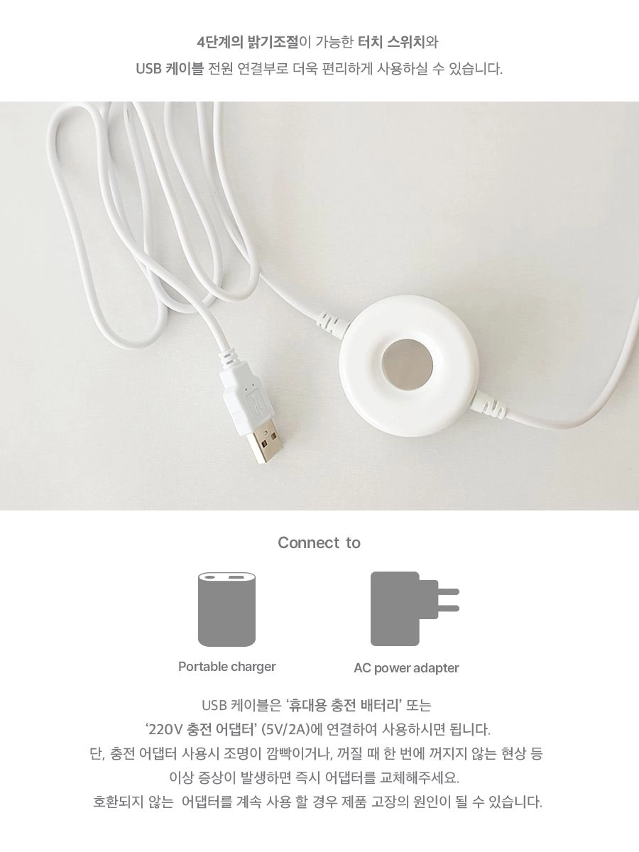 • 원하는 밝기로 4단계 조절이 가능하고 따뜻한 색감의 불빛(warm white)으로 눈이 편안합니다.