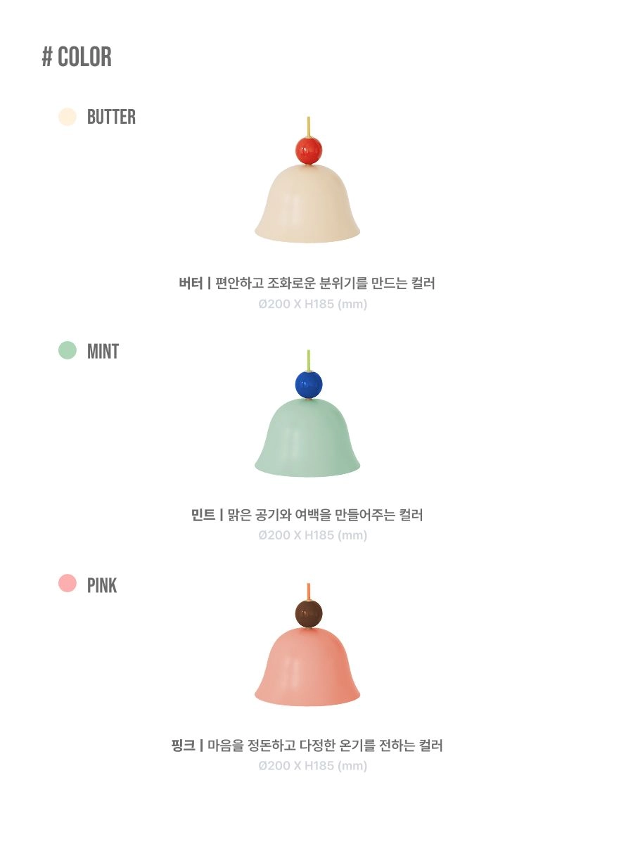 • 종 모양의 부드러운 실루엣과 컬러 볼의 매칭이 공간에 포인트로 사용하기 좋습니다.