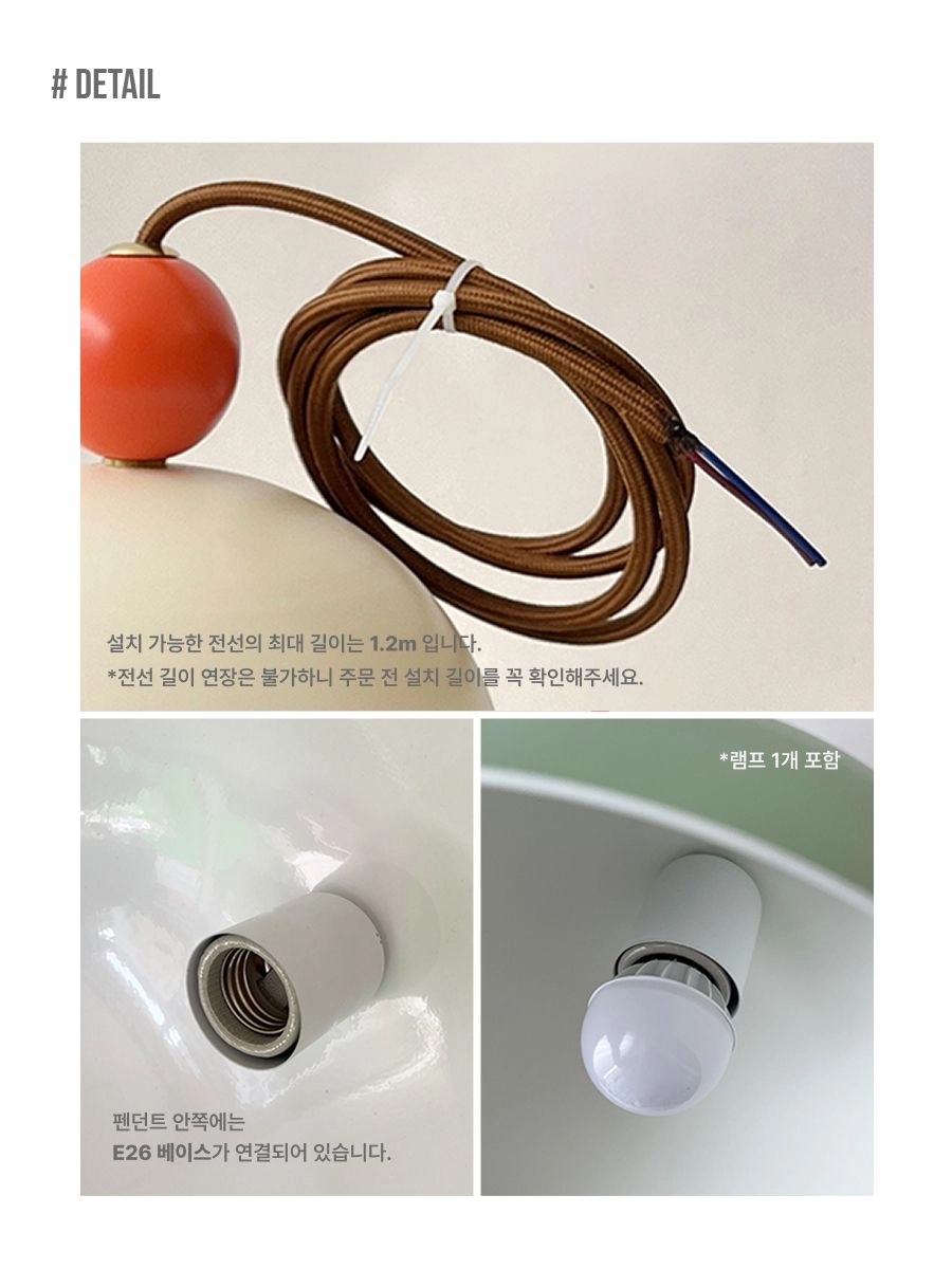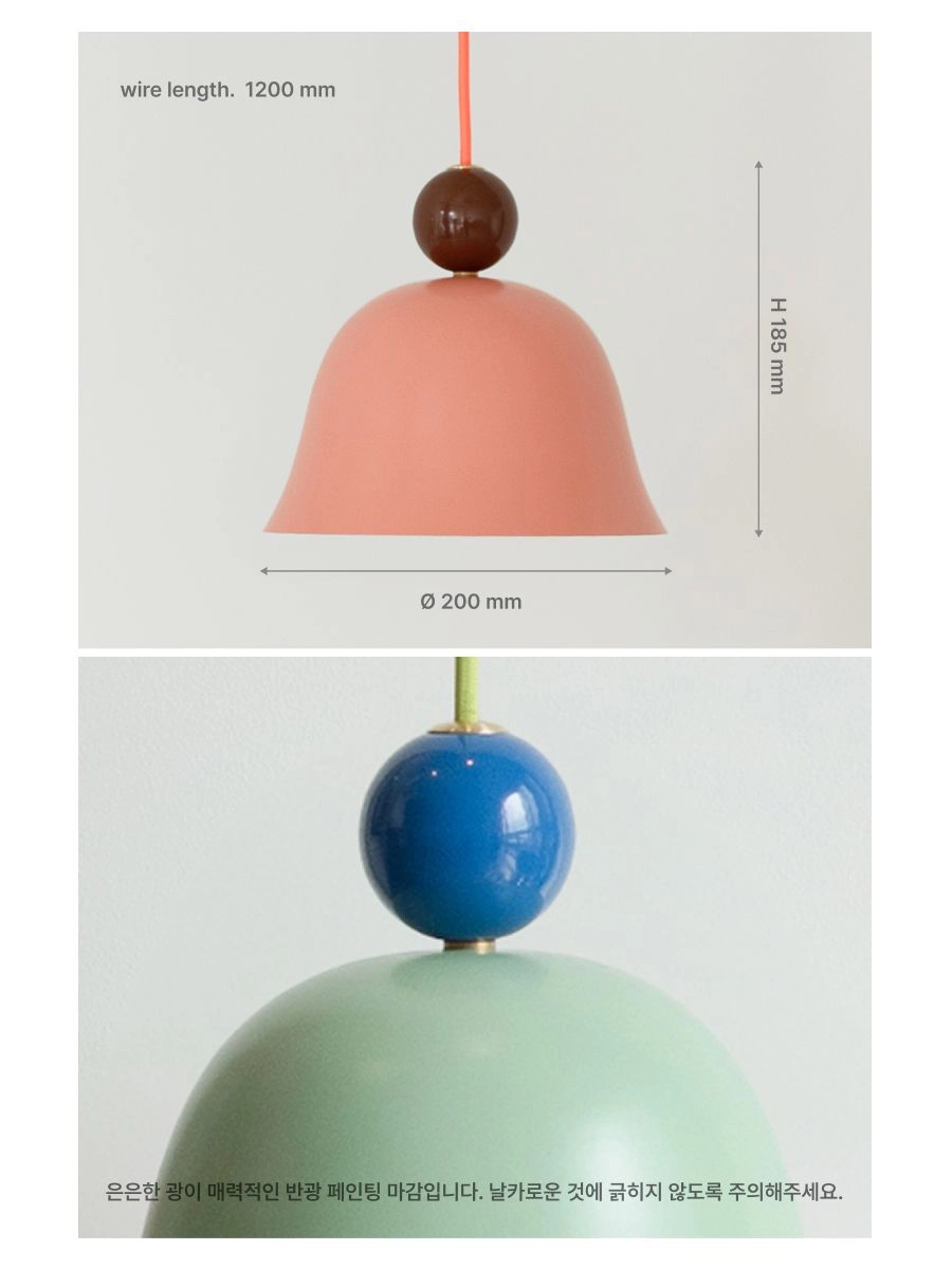 • 침실 코너,선반 위, 파우더룸이나 식탁 포인트 등으로 설치에 사용할수있는 작은 사이즈의 펜던트 조명입니다.